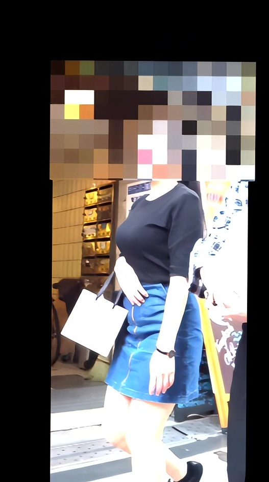 お友達とのお買い物中のようでした。美脚もさることながら、突き出たおっぱいに釘付けになってしまいました。