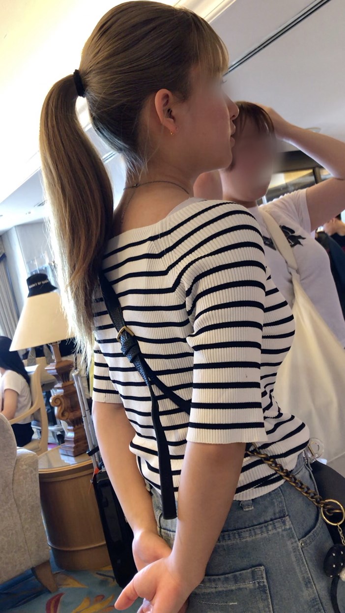 第2候補は黒シャツのへそ出しルックの童顔JD!