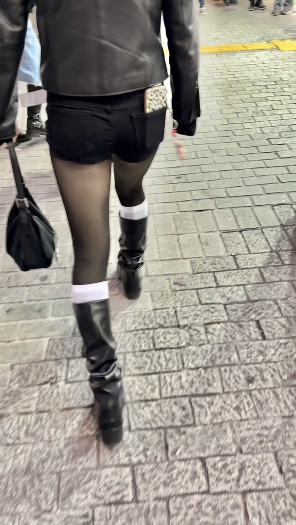 1人目(表題)はライダースに黒パンストショーパンブーツのお姉さん