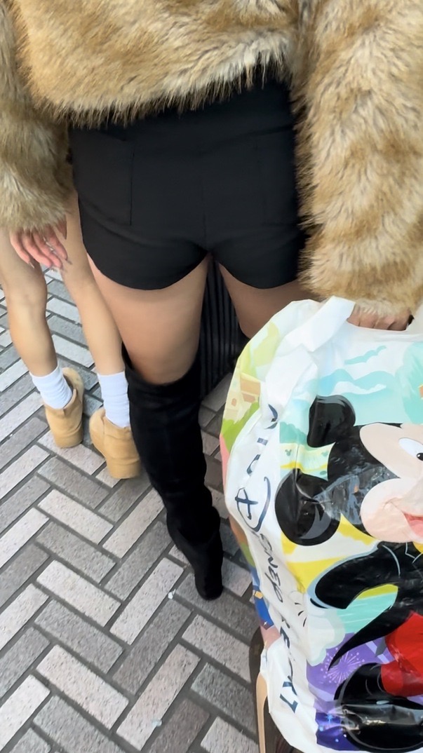 2人目はもこもこのアウターにショーパンブーツスタイルのお姉さん