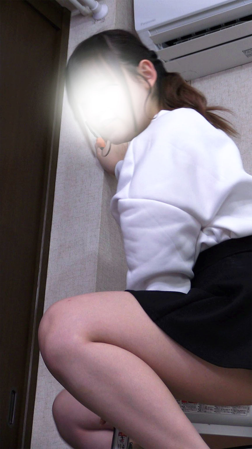 エアコンの下に女だ・・・しかも二人。。。白い肌の地雷系メイクのギャル、、、彼女を撮影しましょうか。。。脚立に座って・・・点検作業の途中休憩だったんでしょう裁縫の話で盛り上がっています( *´艸`)